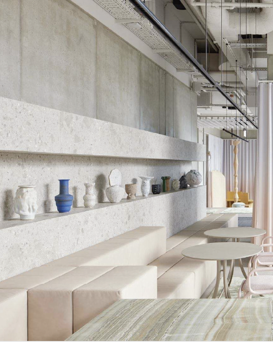 Individuell gefertigte Möbel, maßgearbeitete Steinverkleidungen und lose Möblierung wurden speziell für dieses Projekt entwickelt, gefertigt und montiert.
