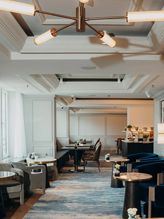 Innenausbau und Möblierung der öffentlichen Bereiche des Hotels. Individuell gefertigte Möbel, maßgearbeitete Steinverkleidungen und lose Möblierung wurden speziell für dieses Projekt entwickelt, gefertigt und montiert.